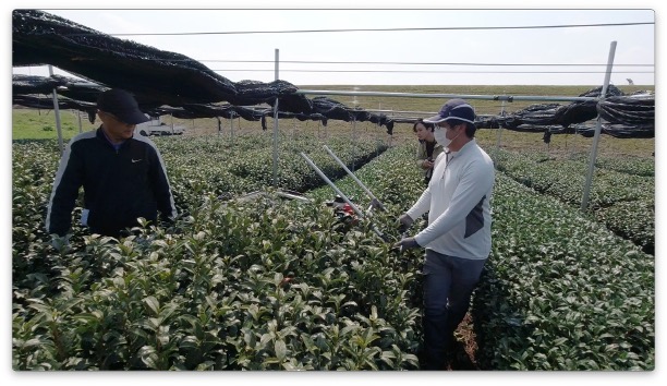 By He Yukun, Kiyoyama Yohei, Mr. Ishida (local tea farmer), He Yuzhong