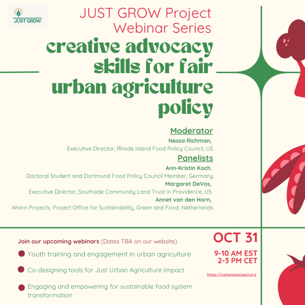 Panel 1: Creative advocacy skills for fair urban agriculture policy October 31st, 9-10 am ET, 2-3 pm CET, 10 pm JST